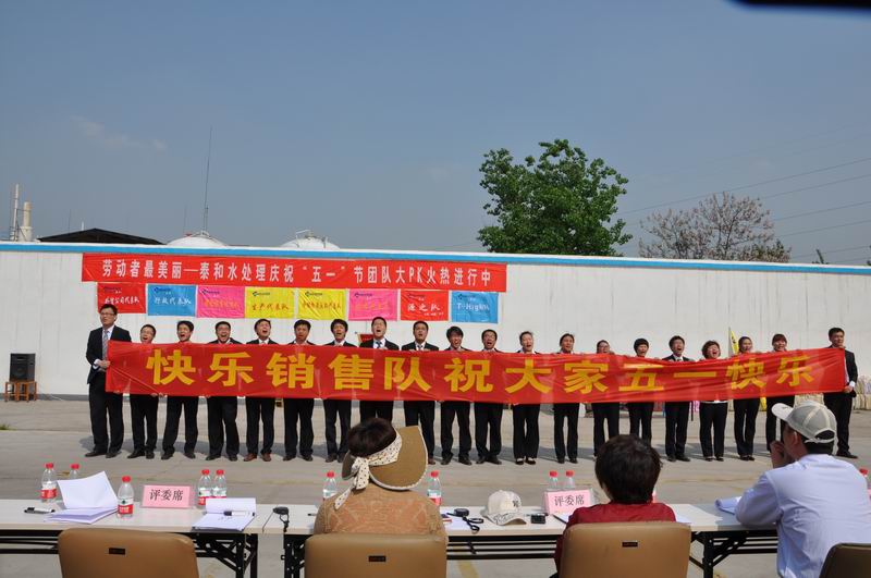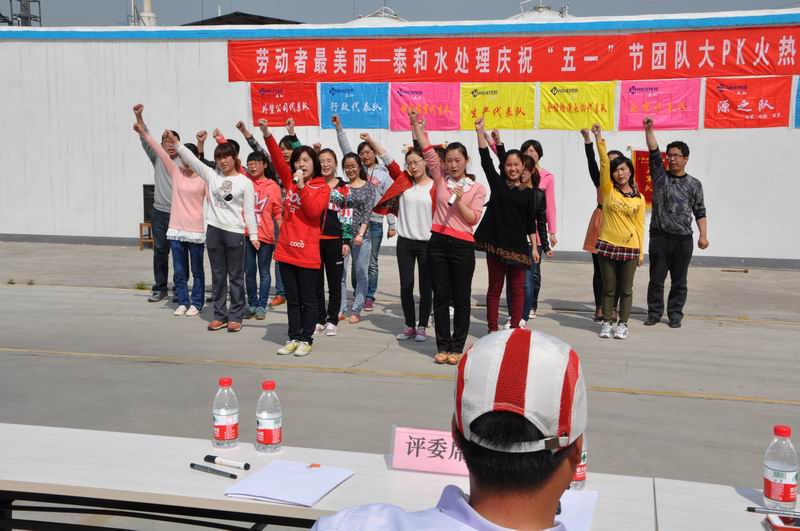4月28日,山東泰和科技公司辦公樓后廣場激蕩著心潮澎湃的團隊樂曲,哨聲、吶喊聲、加油聲和歡呼聲此起彼伏,來自公司生產(chǎn)、營銷、采購、倉儲、物流、質(zhì)量、安全信息及行政等八個代表隊的200余名泰和員工沉浸在比賽的快樂中,由山東泰和科技股份有限公司、山東泰和化工進出口有限公司聯(lián)合舉辦,以“勞動者最美麗”為主題的“慶‘五一’團隊凝聚力大PK活動”正在如火如荼地進行著。