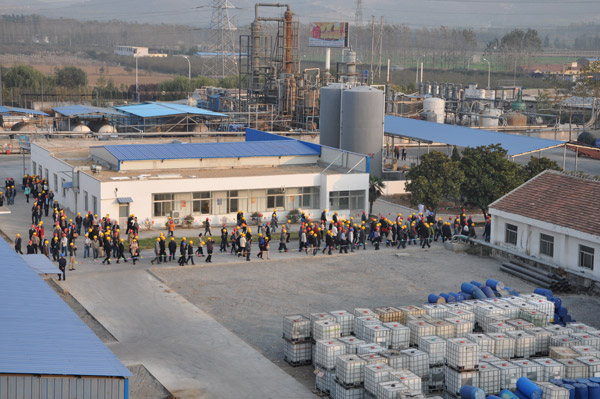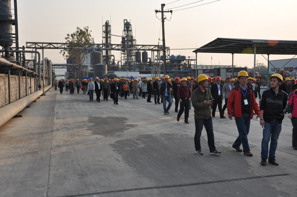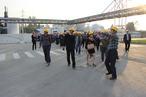 2013年第33屆水處理年會(huì),在山東棗莊開(kāi)元鳳鳴山莊召開(kāi),會(huì)議第一天,全國(guó)300多名水處理專家和同行,參觀山東泰和科技股份有限公司,并在泰和的倉(cāng)儲(chǔ)立體庫(kù)門前完成了本次年會(huì)的大合照。所有代表參觀了泰和工廠,泰和經(jīng)過(guò)這么多年的飛速發(fā)展,現(xiàn)在過(guò)萬(wàn)噸成套設(shè)備有年產(chǎn)2萬(wàn)噸60%HEDP及聯(lián)產(chǎn)1.5萬(wàn)噸乙酰氯裝置1套,年產(chǎn)2.5萬(wàn)噸ATMP生產(chǎn)裝置1套,年產(chǎn)1萬(wàn)噸1227裝置2套。